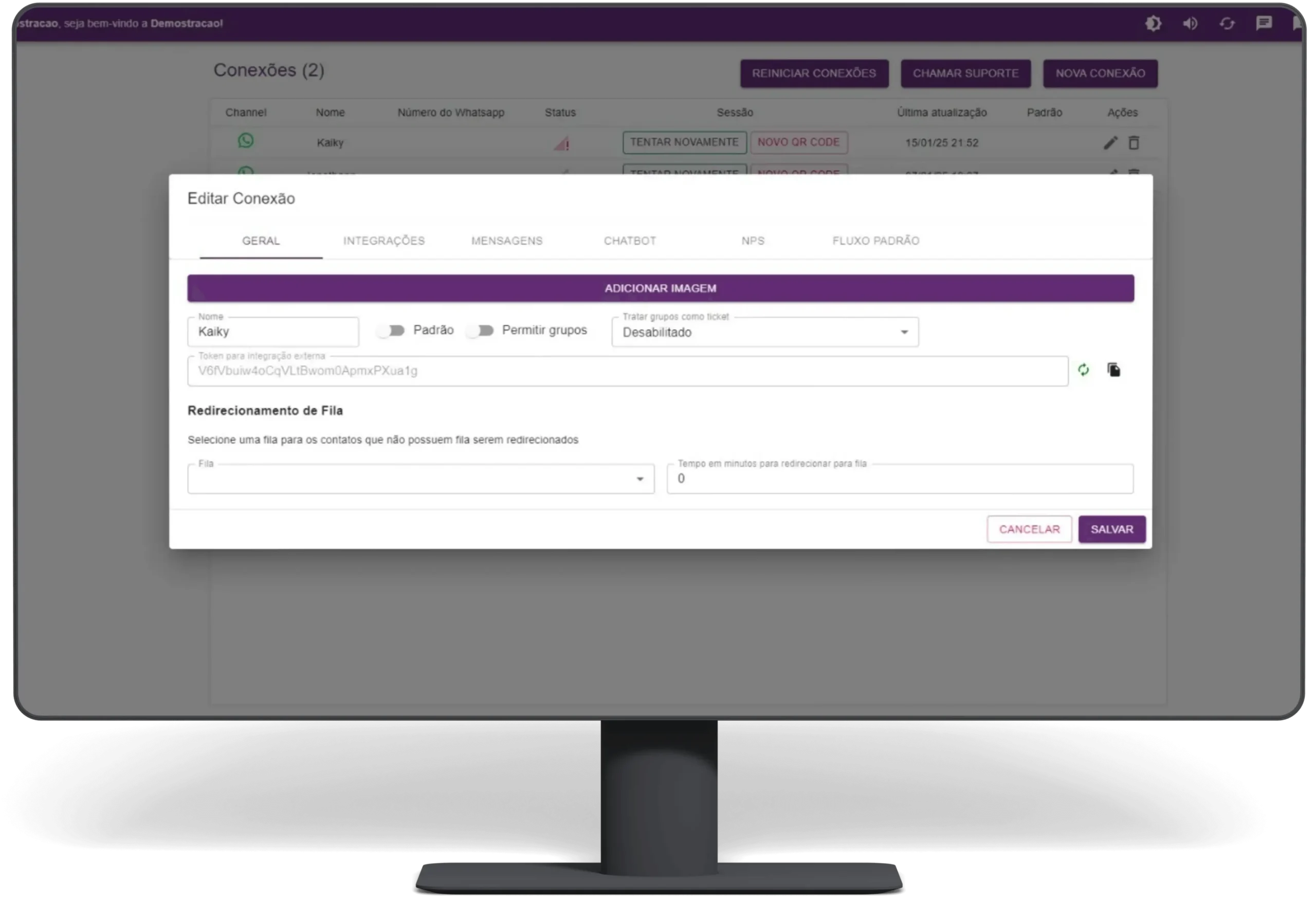 Aproveite as integrações com diversas plataformas de automação de conversa para ampliar o alcance e a personalização do seu atendimento.