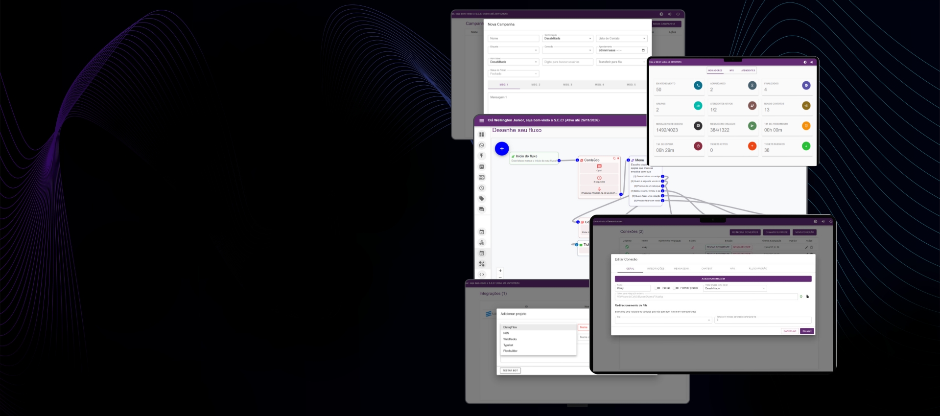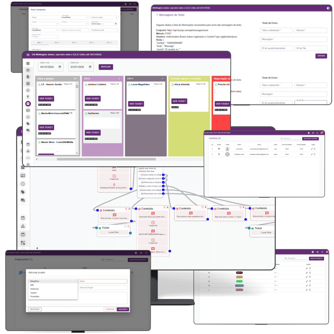 Tudo o que você precisa em um só lugar – ChatBot, CRM Kanban, Webhooks, Disparos em Massa e muito mais.
