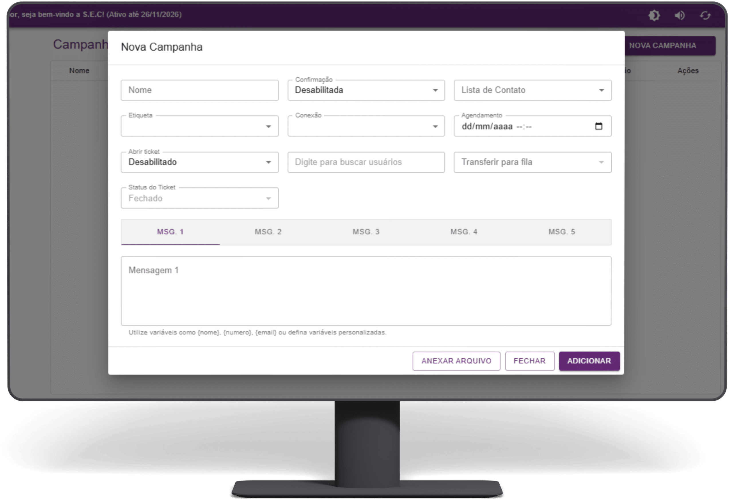 Otimize seus envios em massa com agendamentos randômicos, organizando disparos por etiquetas, agenda ou listas de Excel. Maximize a eficiência e alcance o público certo no momento ideal.