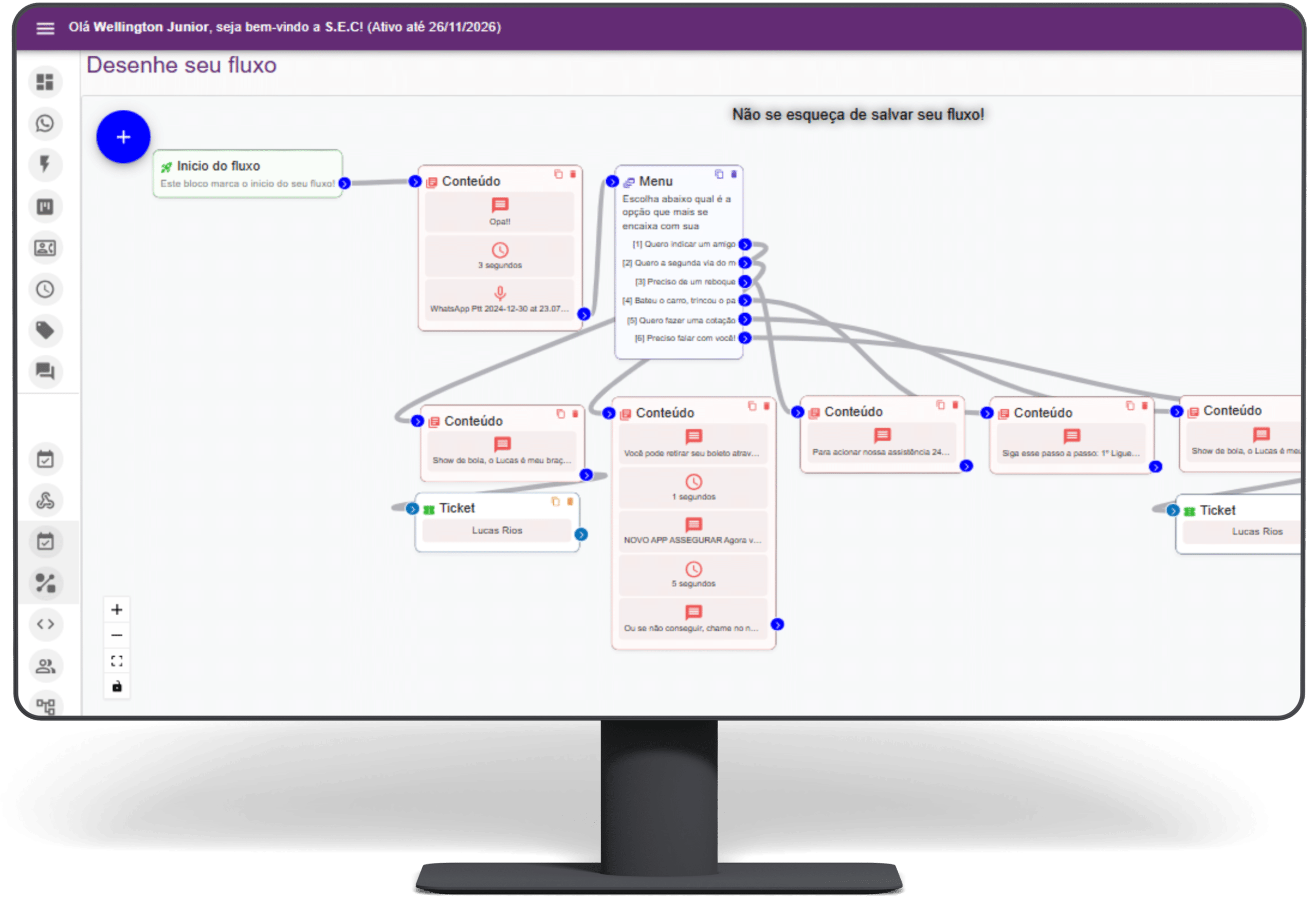 Automatize conversas repetitivas e otimize o tempo de atendimento com nosso ChatBot integrado. Ele permite que você mantenha um suporte ativo e dinâmico, mesmo quando sua equipe não está disponível.